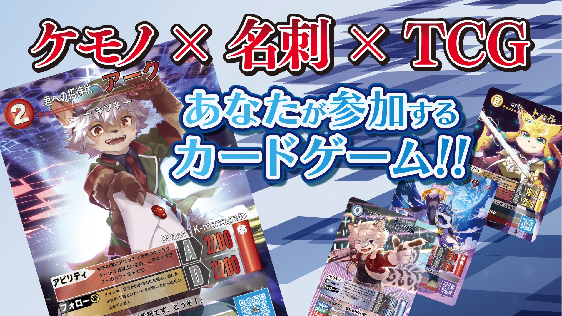 自分のキャラクターをカードとして注文し、名刺として交換することで、交換後の楽しみを拡充するというシステムにより生み出された名刺カードゲームです。