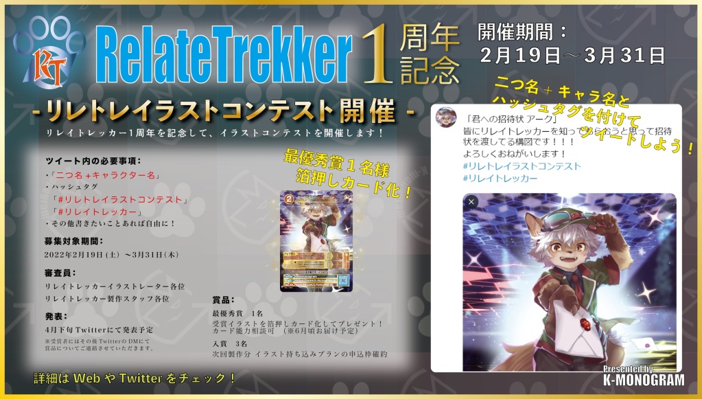 ・ハッシュタグ「#リレトレイラストコンテスト」「#リレイトレッカー」をツイート内に記載してください